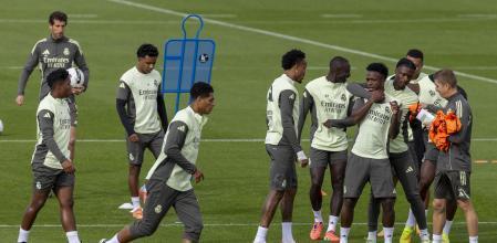 尽管阿拉巴、卡瓦哈尔和吕迪格依然缺席,但球队仍在笼罩首都的阴雨天气下展开训练。本次训练以战术演练为主,但也安排了体能训练以及有球和无球练习。