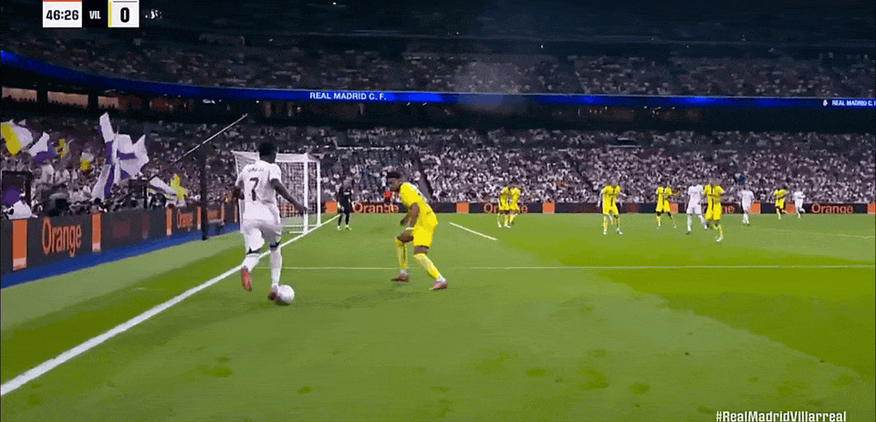 雷速体育10月5日讯 西甲联赛第8轮,皇马对阵比利亚雷亚尔的下半时一开场,维尼修斯凭借个人能力边路突破内切打门,攻入个人本赛季西甲联赛第4粒进球。